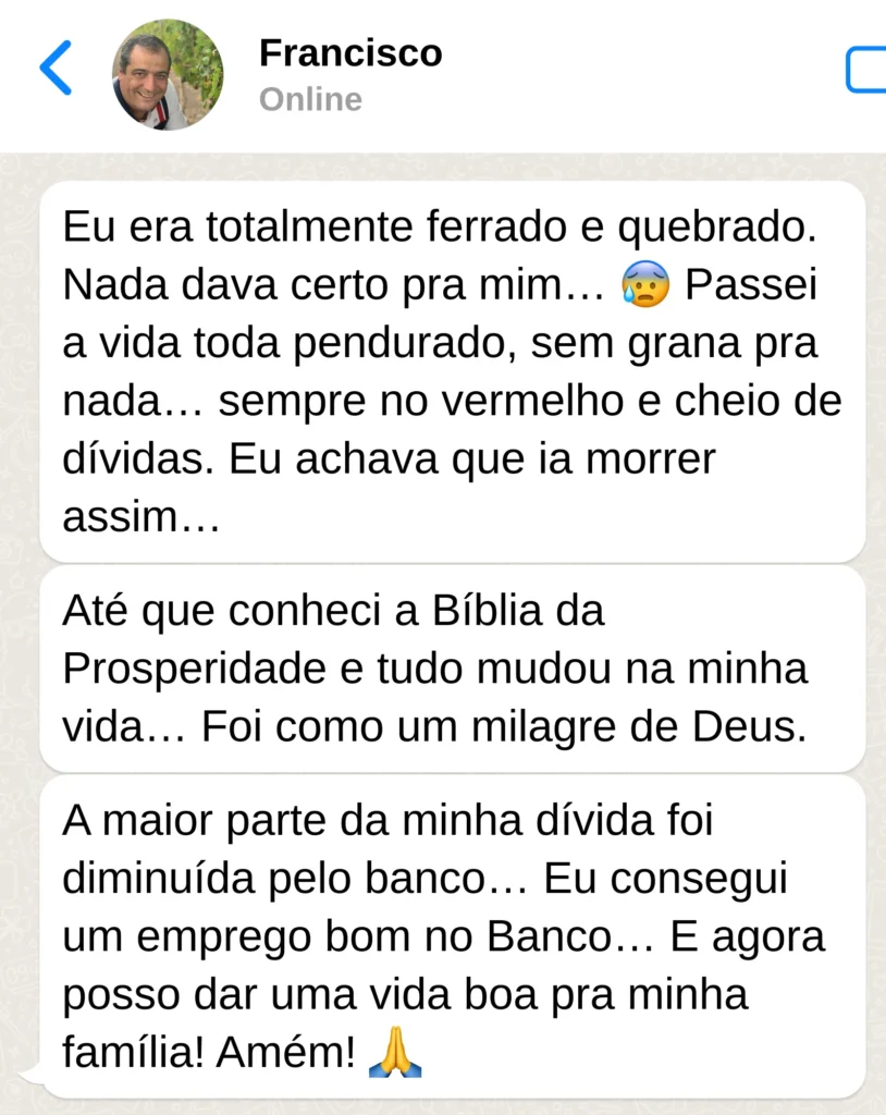 Em apenas 5 semanas, aplicando esses mesmos ensinamentos da Bíblia da Prosperidade, ela conseguiu zerar suas dívidas e até começou uma pequena empresa que hoje garante a renda da família toda.